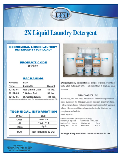 Regular price $98.99Unit price /Unavailable2X Liquid Laundry Detergent ($22/Per Gallon) Cleans 512 Commercial Loads